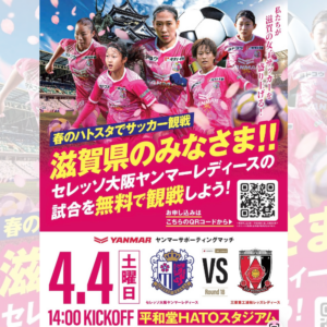 2026.03.19【⼥⼦プロサッカー】セレッソ⼤阪ヤンマーレディースの滋賀県ホームゲームに無料ご招待!