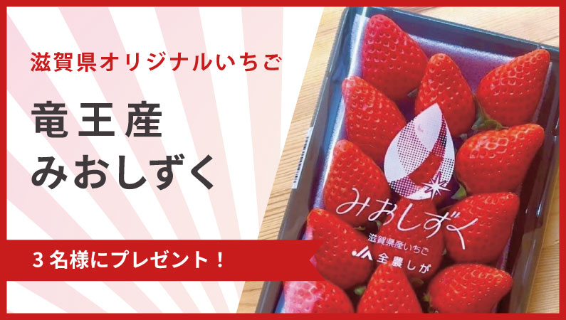 滋賀県オリジナルいちご「みおしずく」を、2パックセットで抽選で3名様にプレゼントします。
