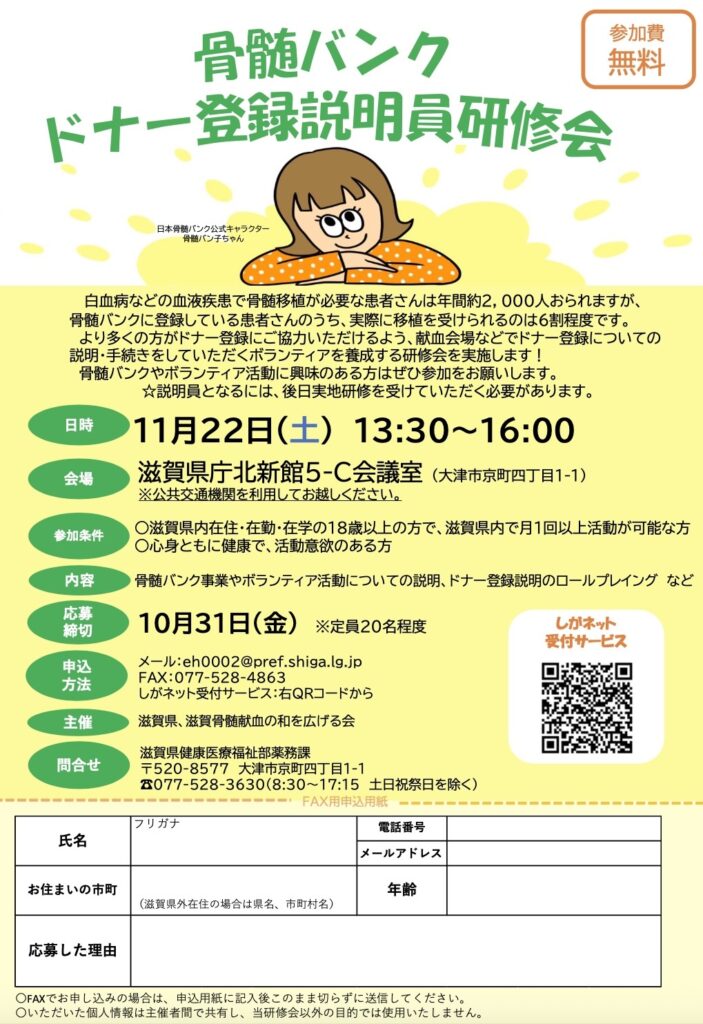 - ・滋賀県内在住・在勤・在学の18歳以上の方 ・滋賀県内で、月1回以上ボランティア活動が可能な方 ・心身ともに健康で、活動意欲のある方