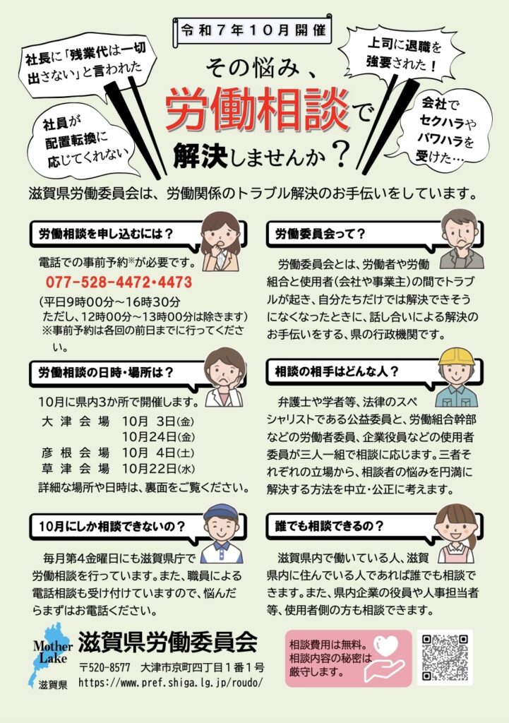 - 大津会場:滋賀県庁東館5階 ・彦根会場:彦根勤労福祉会館3階 ・草津会場:草津市市民交流プラザ