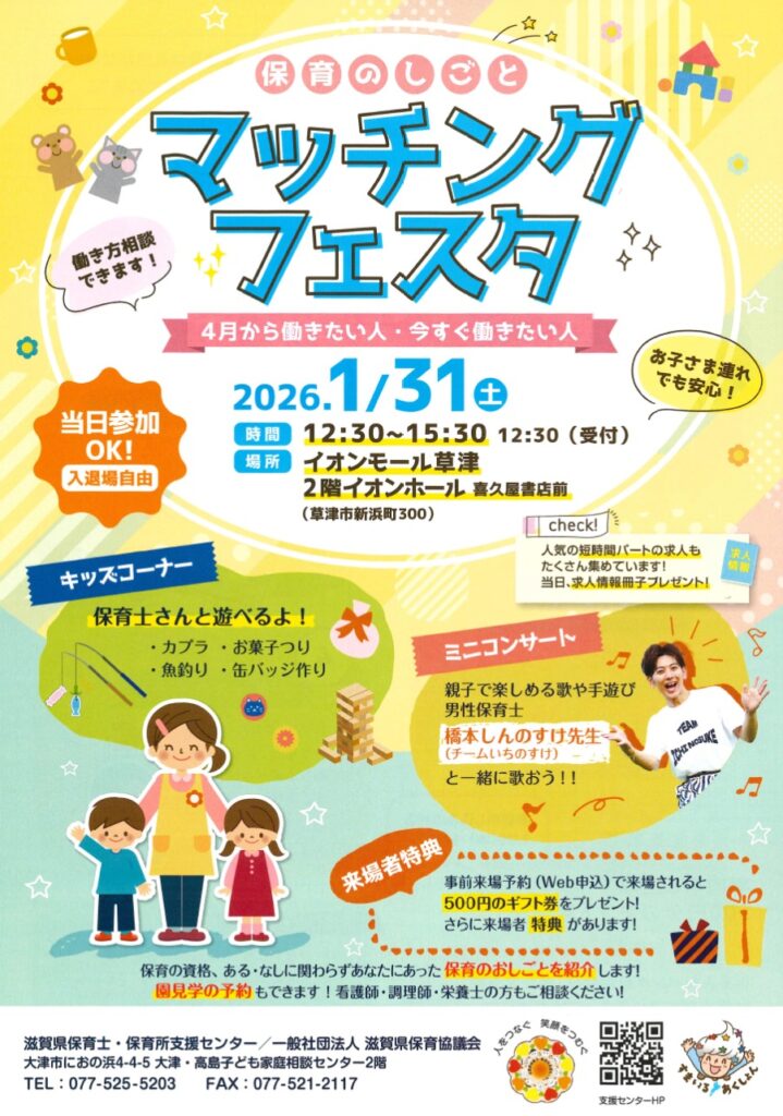 - ・現在、保育所等で働かれていない、保育士資格をお持ちの方 ・保育士資格をお持ちでないが、これから取得予定の方