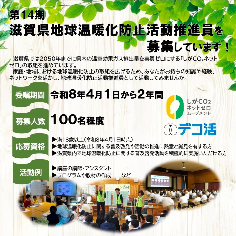 第14期滋賀県地球温暖化防止活動推進員の募集