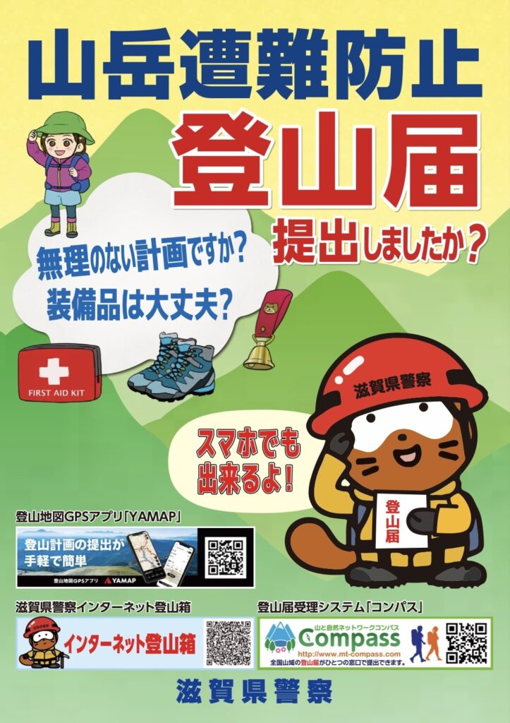 山岳情報・インターネット登山届は「滋賀県 警察の広場」からどうぞ
