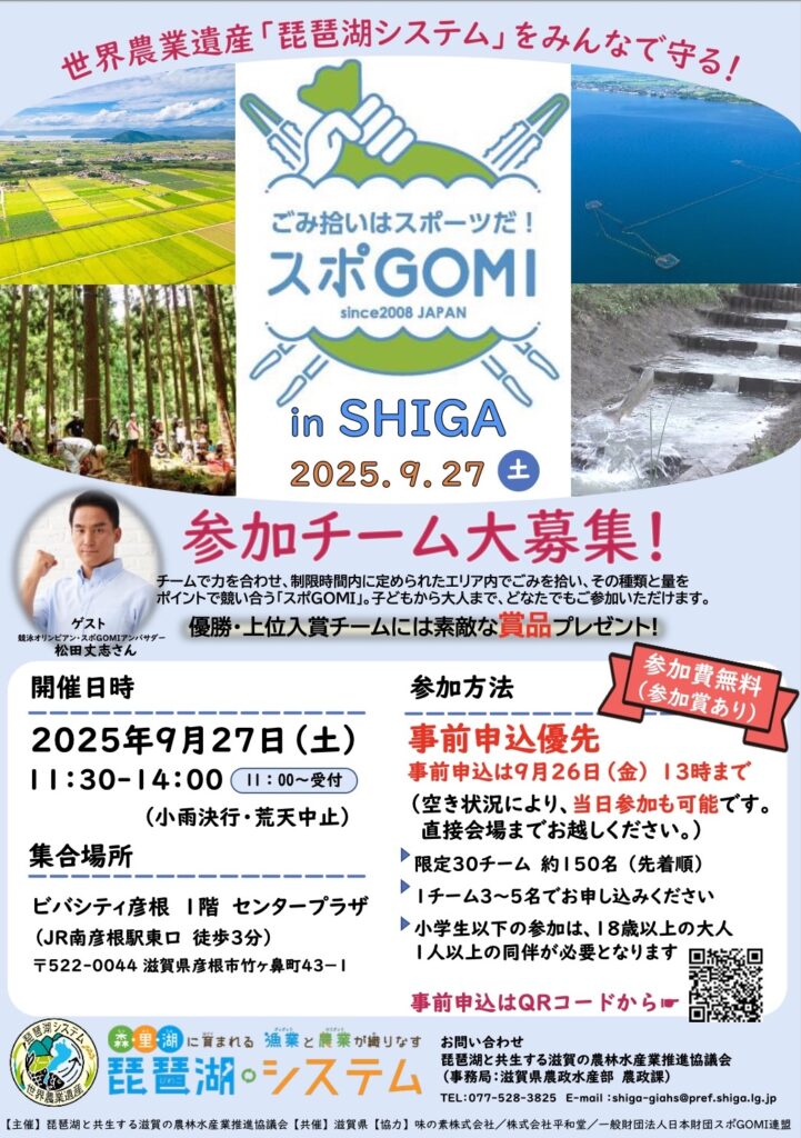 ゲストに競泳オリンピアンの松田丈志さんをお招きし、環境講座を実施いただくほか、立命館大学の学生が「琵琶湖システム」ならではの滋賀の恵みを利用して味の素株式会社と共同開発した「しが・「勝ち飯®」レシピブック」のお披露目も行います。