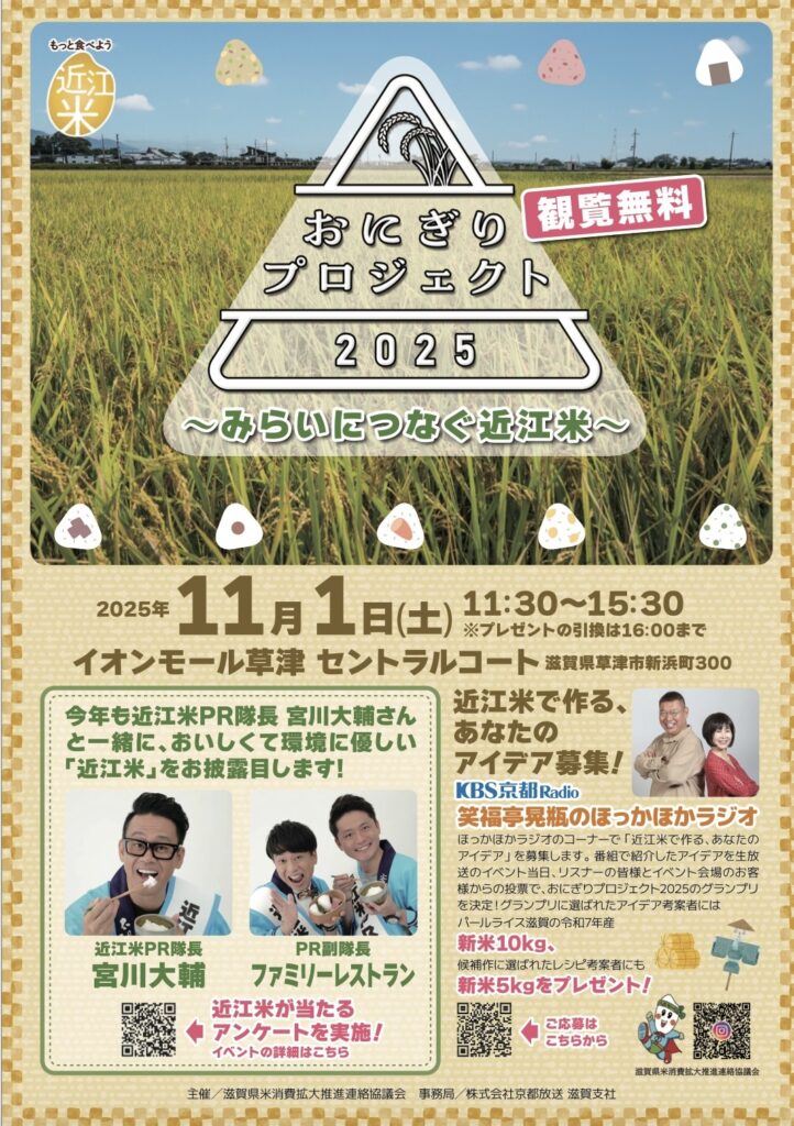 新作おにぎりレシピのグランプリを選考するラジオ公開生放送や、抽選で近江米が当たるアンケート、滋賀県出身ミュージシャンによるミニライブなど、内容盛りだくさん!