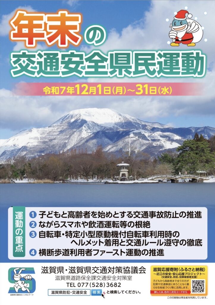 12月1日(月)から12月31日(水)までの1か月間、年末の交通安全県民運動が実施されます。