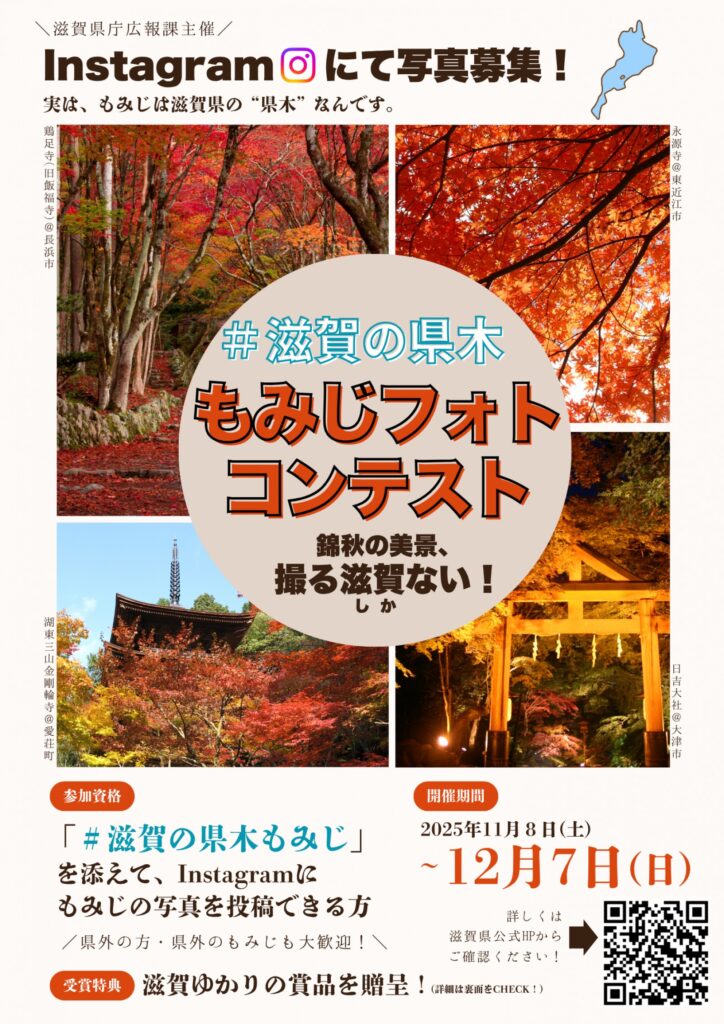 全国の皆さんに滋賀をもっと知ってもらうため・滋賀の魅力をさらに発信するため、紅葉シーズンに合わせて滋賀の県木「もみじ」のフォトコンテストを開催します!