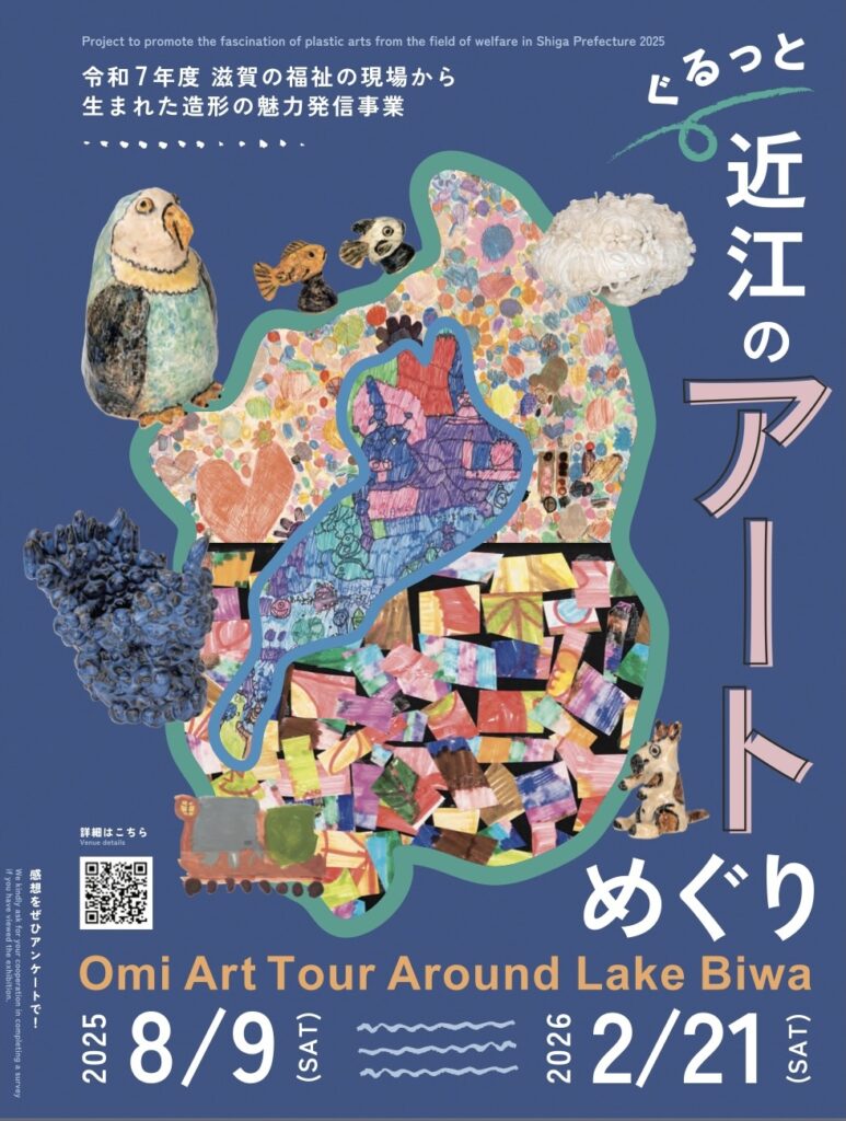 県内外の多くの方に、福祉の現場における先駆的な創作活動の歴史と蓄積がある、滋賀県ならではの取組みを背景に育まれた造形の魅力に出会っていただくとともに、文化資源をテーマとした観光や周遊のきっかけとなるよう、県内各地の宿泊施設と集客施設での作品展示を行っています。