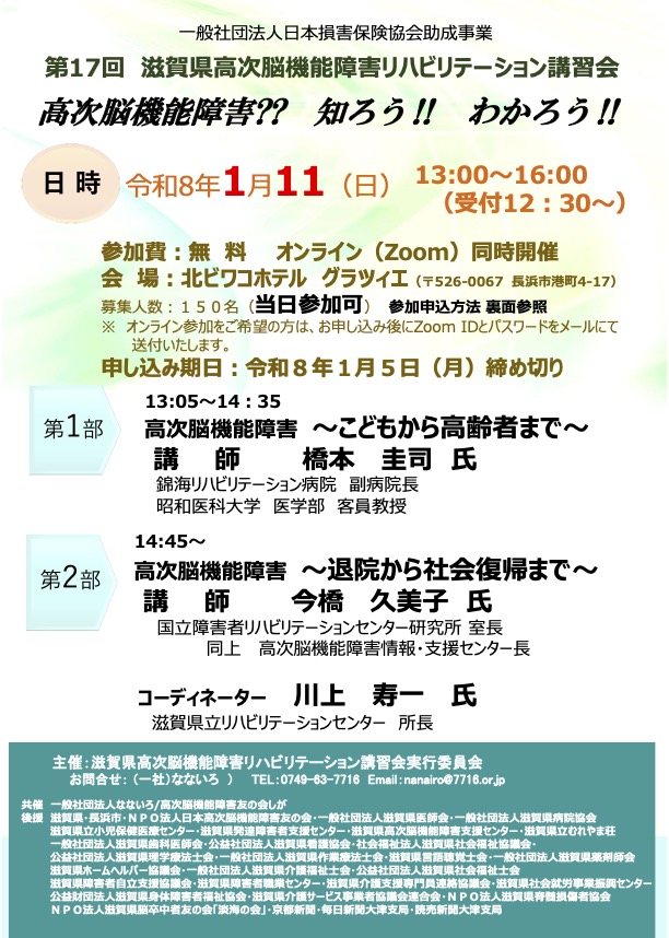 滋賀県高次脳機能障害リハビリテーション講習会を開催します。