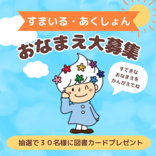 この度、今年度予定している「すまいる・あくしょん」のバージョンアップに合わせて、「すまいる・あくしょん」のイメージキャラクターの名前を募集します!