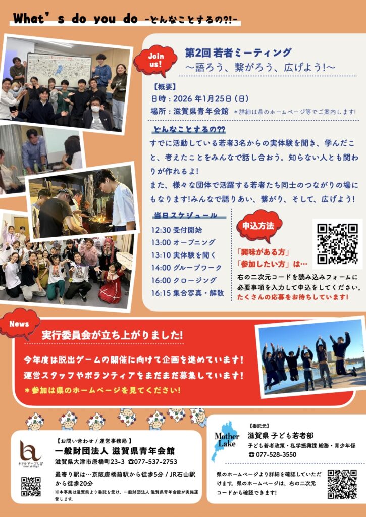 みんなでしゃべって、つながり合って、若い力で滋賀県を盛り上げていきたいと思います。皆さんの参加をお待ちしております。