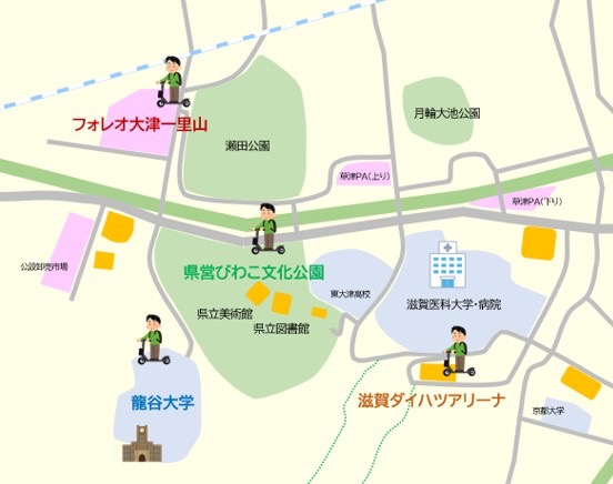 滋賀県および滋賀ダイハツ販売株式会社は、「びわこ⽂化公園都市エリア」(※1)で、シェア電動キックボードの試験導⼊を⾏います。シェア電動キックボードやシェアサイクル等のシェアモビリティは、新しいモビリティとして全国的に普及が進んでおり、本エリアにおいても公共交通を補完し、エリア内の周遊を活性化するツールとして期待されます。びわこ⽂化公園都市にお越しの際は、ぜひご活⽤ください!