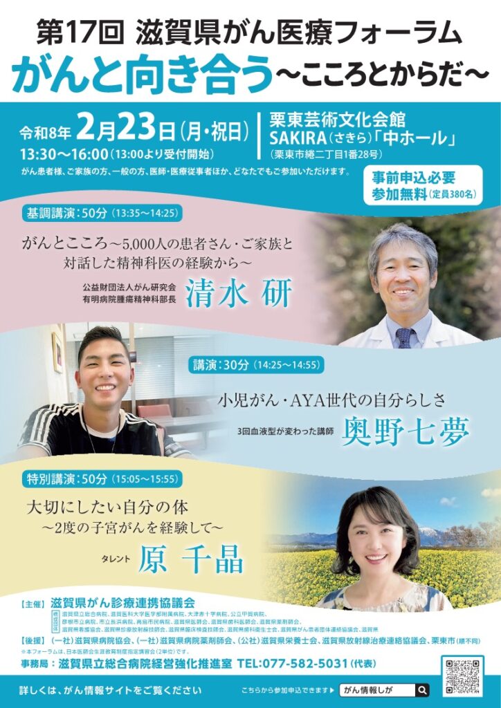 滋賀県がん診療連携協議会では、第17回滋賀県がん医療フォーラムを開催します。