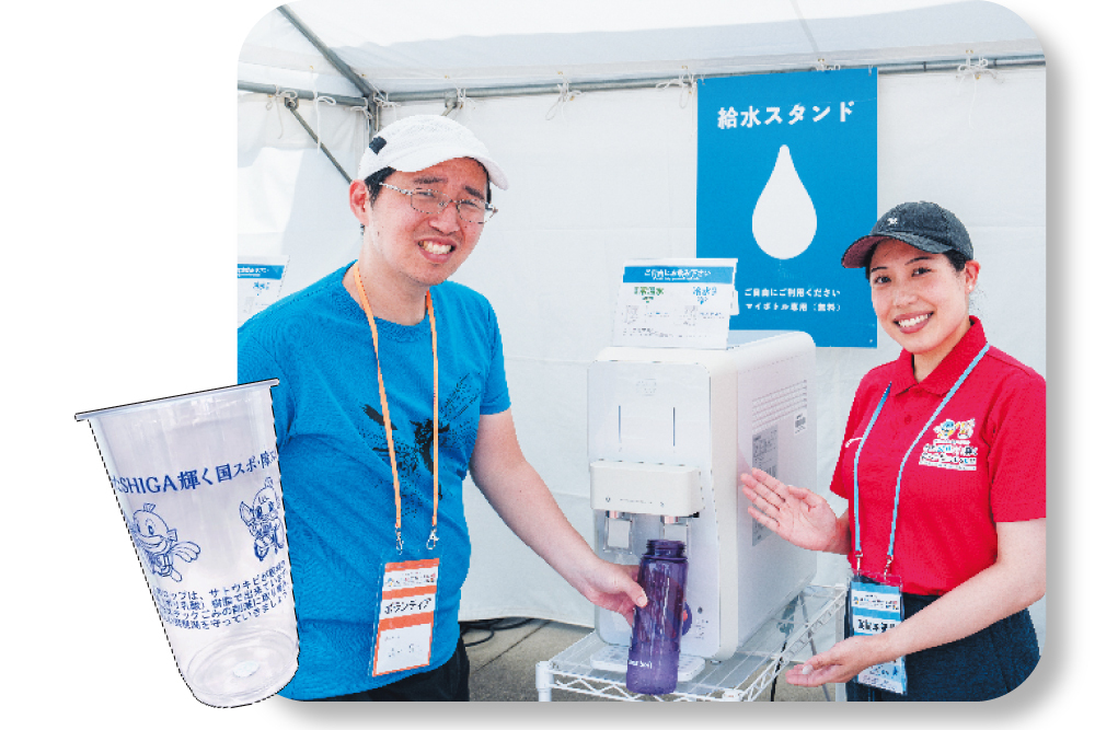 滋賀県では、琵琶湖を中心とした環境への取組を行っており、本大会でも「わたSHIGA輝く国スポ・障スポMLGs宣言」を掲げ、環境に配慮し実践する大会を目指しています。皆さんも観戦の際はマイボトルを持参するなど、身近なところから取り組んでいきましょう!