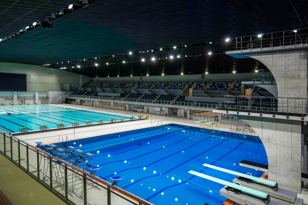 草津には、西日本初の通年で利用できる飛び込み競技用プールを備えた「インフロニア草津アクアティクスセンター」が整備されました。今大会では、大会新記録が昨年の倍ぐらい出ており、高飛び込みパリ五輪銀メダリストの玉井陸斗選手も練習の拠点にされています。運が良ければ、銀メダリストの練習を草津で見られるかもしれません。