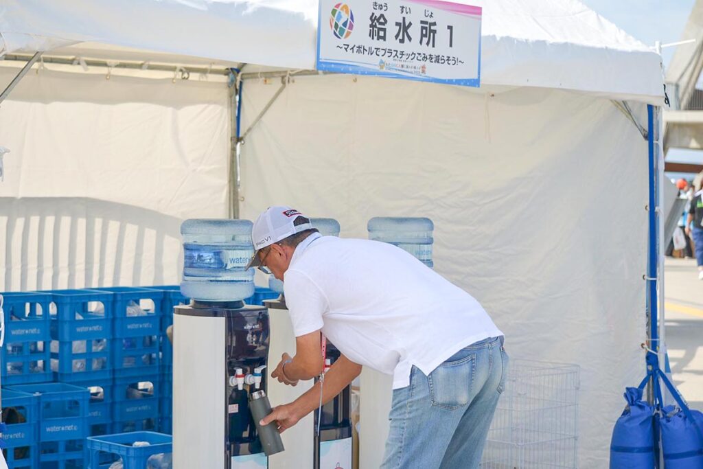琵琶湖をお預かりしている県として、環境配慮にも力を入れて取り組みました。その一環として、来場者の方にマイボトルを持参してほしいと呼びかけを行い、会場にはウォーターサーバーを設置しました。