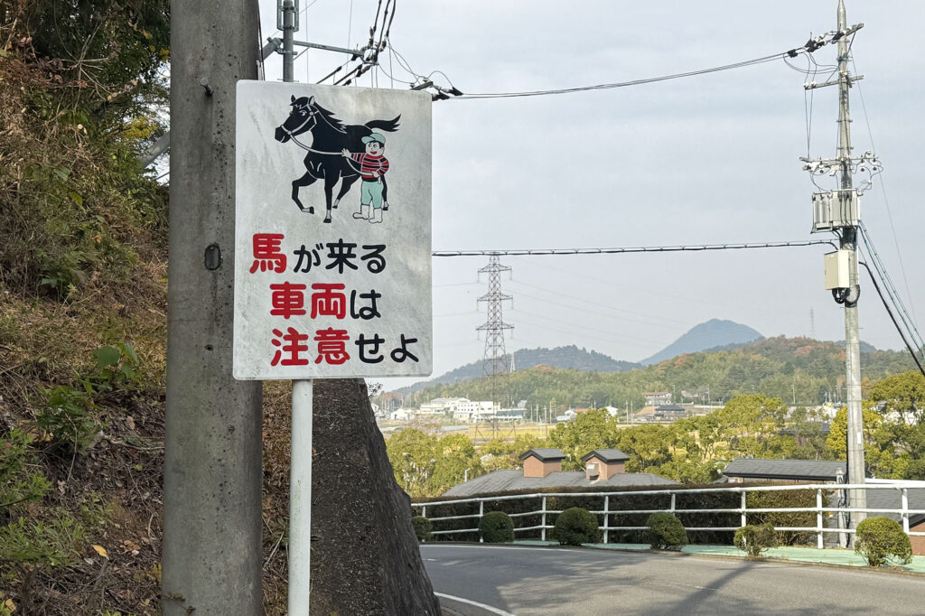 早朝、トレセンの周辺道路を歩いてみると、調教に向かう馬たちの姿を見かけることも。トレセン内には、日本競馬史上初の五冠馬「シンザン号」の馬像があり、道路には「馬が来る」の標識も。トレセンならではの光景が広がります。