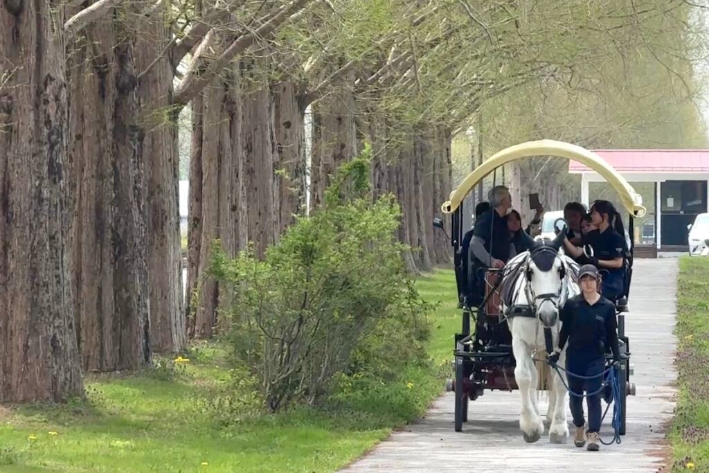 メタセコイア並木を馬とお散歩できる「メタセコイアと馬の森」