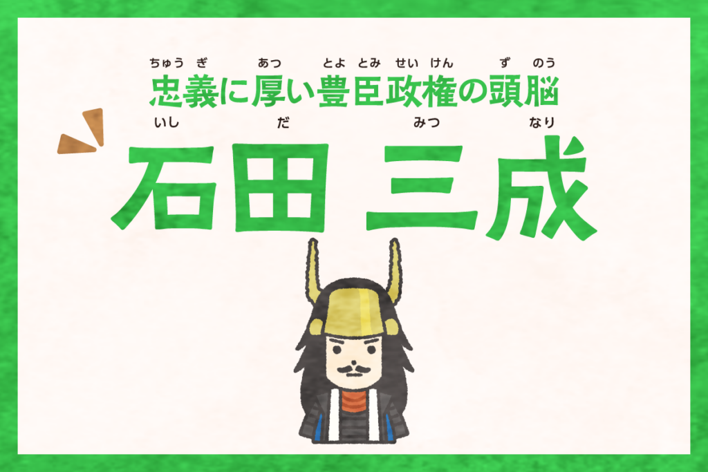 現在の長浜市に次男として生まれる。曲がったことを嫌い、規律を重んじる生真面目な性格だった。観音寺で小僧をしていたころ、喉が渇いていた初対面の秀吉に、三成はぬるめ→やや熱め→熱めと3段階でお茶を出す巧みなもてなしを見せた。この「三献の茶」をきっかけに秀吉に仕えることとなる。