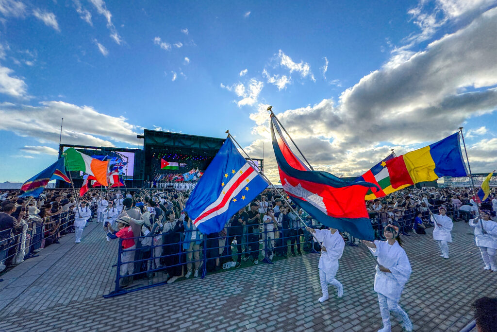 中でも圧巻だったのは、全世界167の旗が登場したフラッグセレモニー。ミャクミャクを先頭に行われたパレードは、まさに世界がひとつになった象徴的な瞬間となりました。