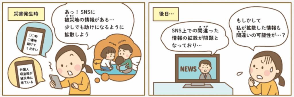 「インターネット上には、真偽が不明の情報やデマが本当に多くあります。誰かになりすました人から、ニセの情報が発信されることも。真偽を確認せずに拡散してしまうと、人の心を傷つけたり、場合によっては人の命を危険にさらしてしまうことがあります」