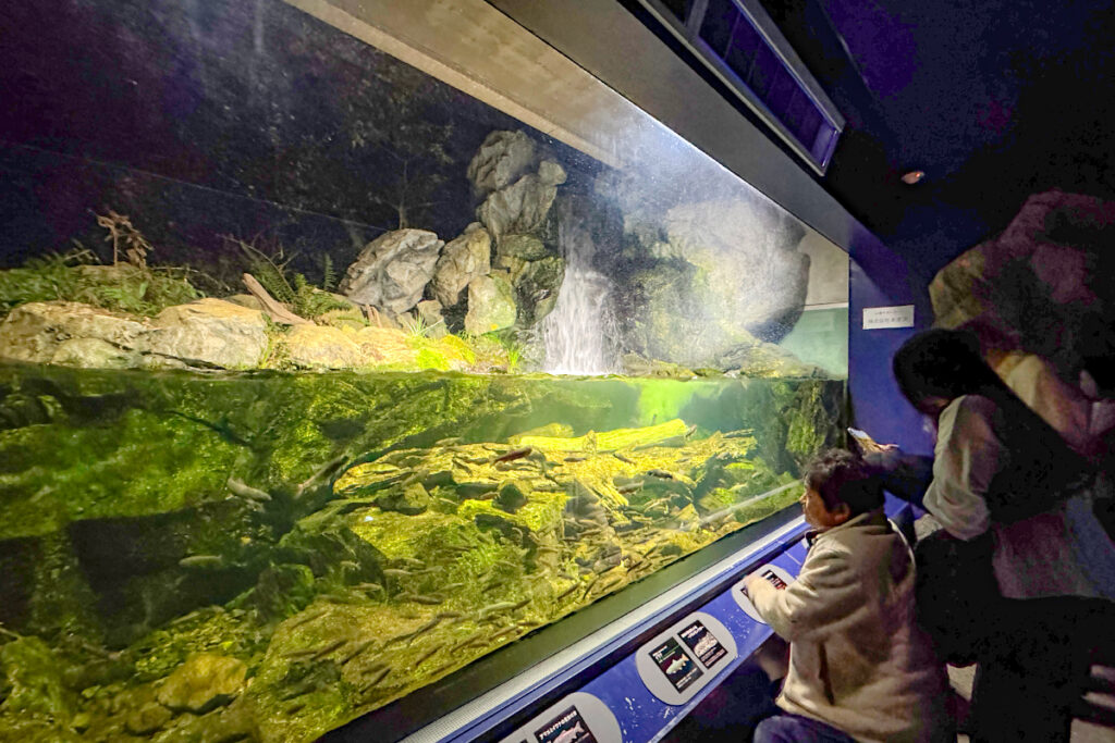 なかでも子どもたちに大人気だったのが水族展示。水槽に浮かび上がるバイカルアザラシのシルエットや、いきいきと泳ぐ夜行性の魚たちに思わず歓声があがります。暗くなった館内では生きものたちの警戒心がやわらぐのか、魚がガラス越しに顔の近くまで寄ってくる場面も。昼間とはひとあじ違う生き物たちの姿が見られるのは「ナイトミュージアム」の醍醐味のひとつです!