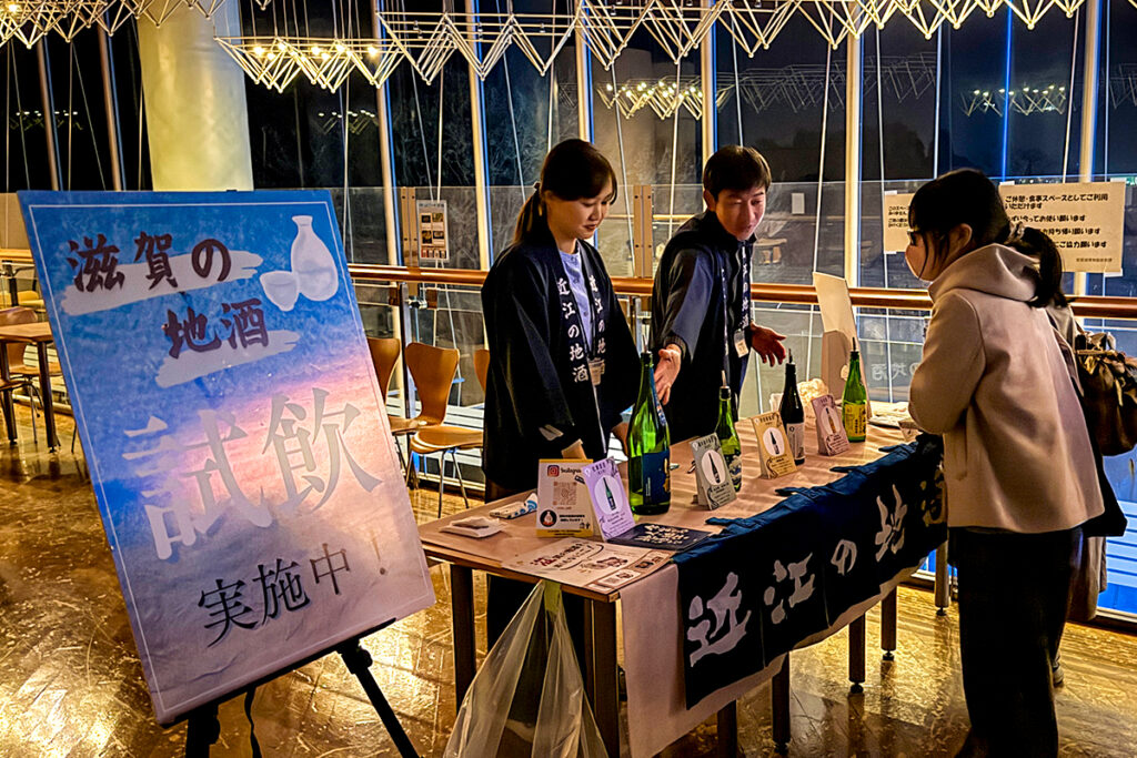 このほか会場では、近江の地酒のふるまいやヨシ灯りの展示など、滋賀らしい企画も実施。やわらかな灯りに包まれた館内で、来場者は思い思いに特別な夜を満喫していました。帰り際には子どもたちから「ものすごく楽しかった」「また来たい」といった声も聞かれ、ナイトミュージアムは大きなにぎわいのなか幕を閉じました。