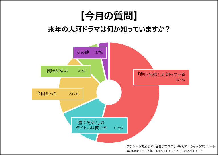 来年からスタートする大河ドラマ「豊臣兄弟!」の舞台が滋賀と発表され盛り上がりを見せている中、県民の皆様はどれぐらい認知し楽しみにしているのかを聞いてみました。