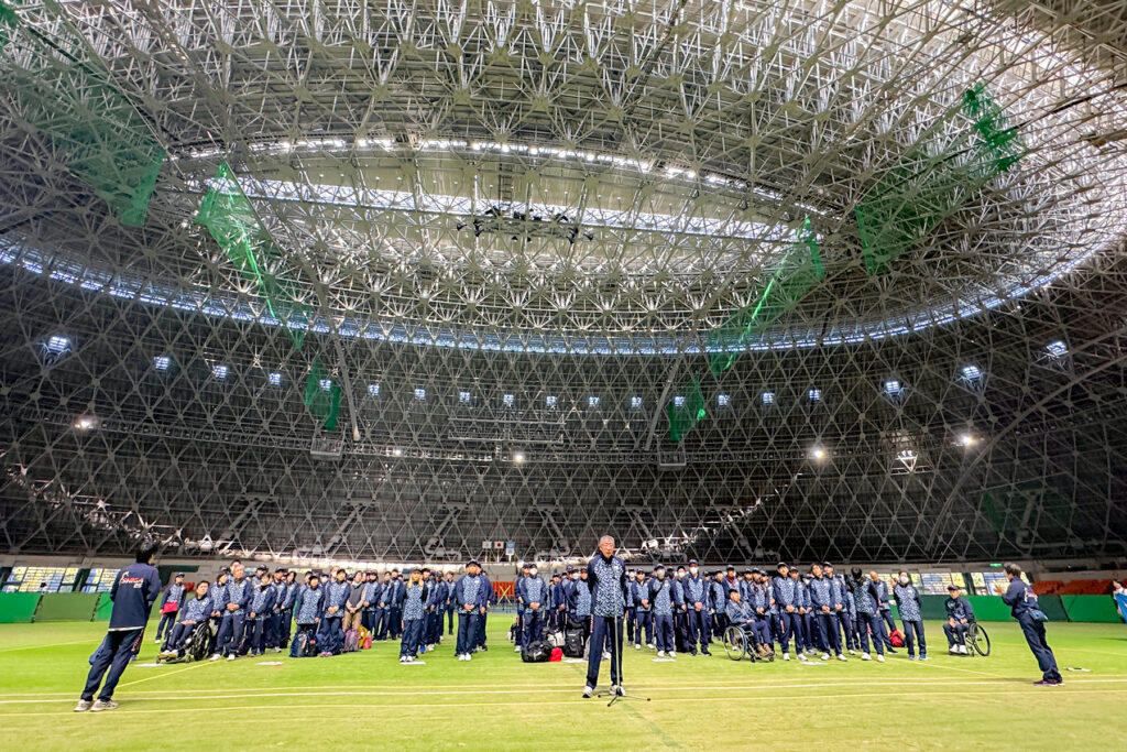 整列した選手たちは真剣な表情でその言葉を受け止め、会場は一体感に包まれました。