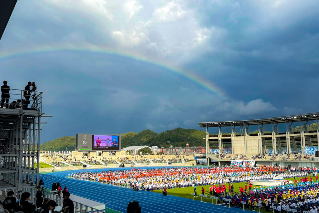 大会最終日、閉会式が行われる平和堂HATOスタジアムの上空には大きな虹がかかりました。